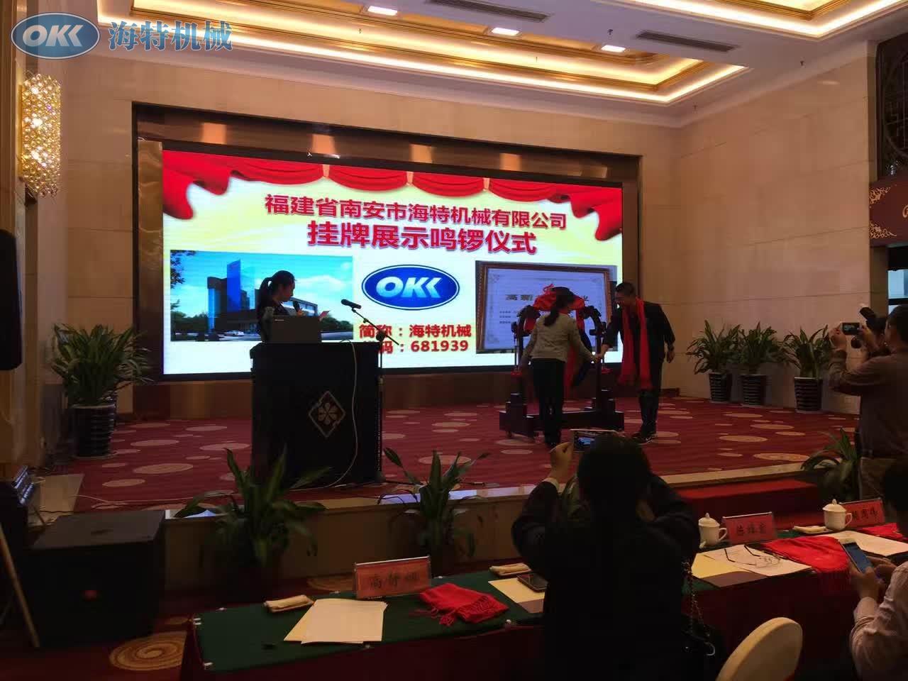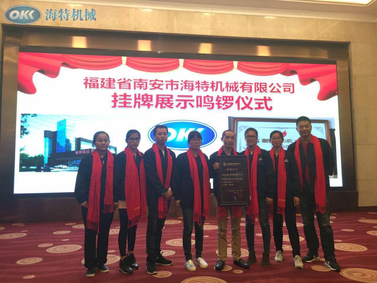 2016年11月22日,泉州首批科技型創(chuàng)客企業(yè)在海峽股權(quán)交易中心集體掛牌,海特機械董事長劉海濱上臺鳴鑼,響徹的鑼聲標(biāo)志著海特機械正式與資本的對接,意味著企業(yè)進入了更為多元和便捷的融資平臺,供助這一平臺獲得更多的優(yōu)勢資源。