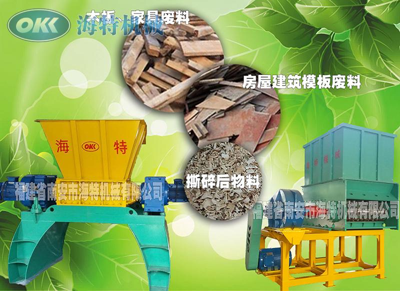 Shredding machine is suitable for shredding wood,pallets waste,living garbage,waste template pieces,both dry and wet materia,waste iron nails,imports of irregular blade. The whole machine modular design,easy to repair and replacement,multiple protection system.
